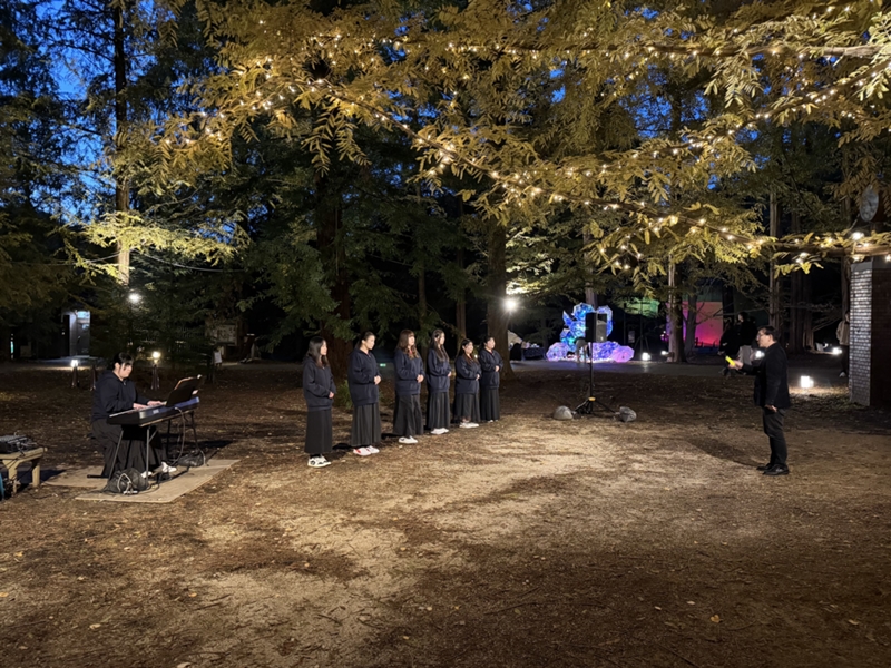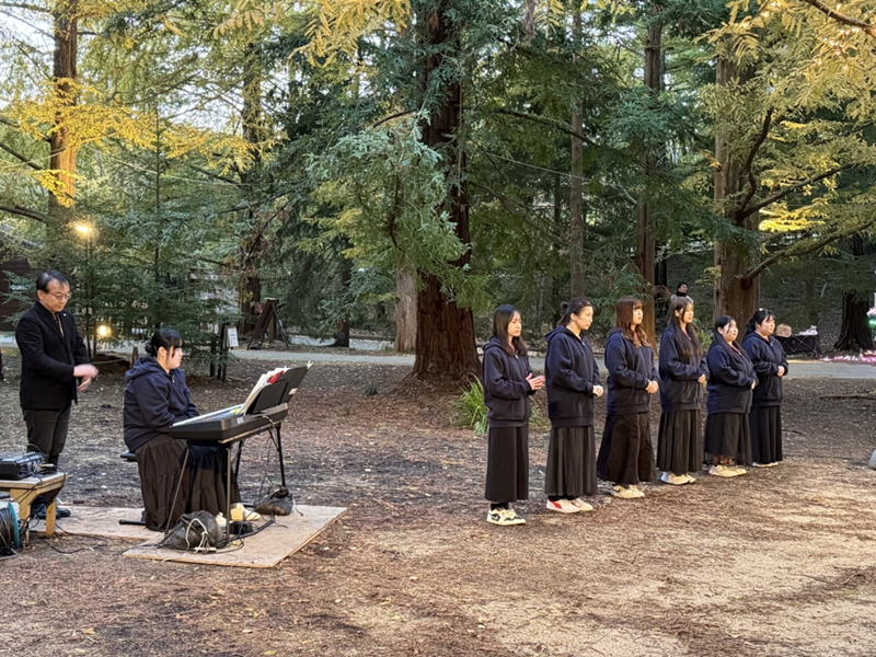 11月3日(月)に本学音楽ゼミ4年次生7名と放送局2名の計9名の学生が、神戸弘陵学園高等学校放送部の皆さんと一緒に神戸市立森林植物園の紅葉ライトアップコンサートに参加させていただきました。
