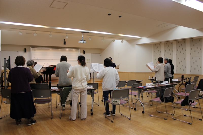 今回の講座は全5回で行い、本学非常勤講師の貞清 直美氏、窪田 深雪氏が講師として受講生のみなさんと「愛の花」、「Greetings」を合唱しました。