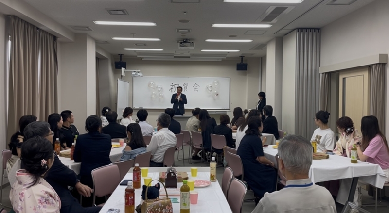 2025年9月27日(土)大学院文学研究科教育学専攻では、15名の修了生の門出を祝して祝賀会を開催いたしました。当日は、修了生の皆さまと先生方が、思い出を語り合う温かな時間を共有されました。思い出深い学び舎から新たな一歩を踏み出される修了生の皆さまの、今後のご健康とご活躍を心よりお祈り申し上げます。