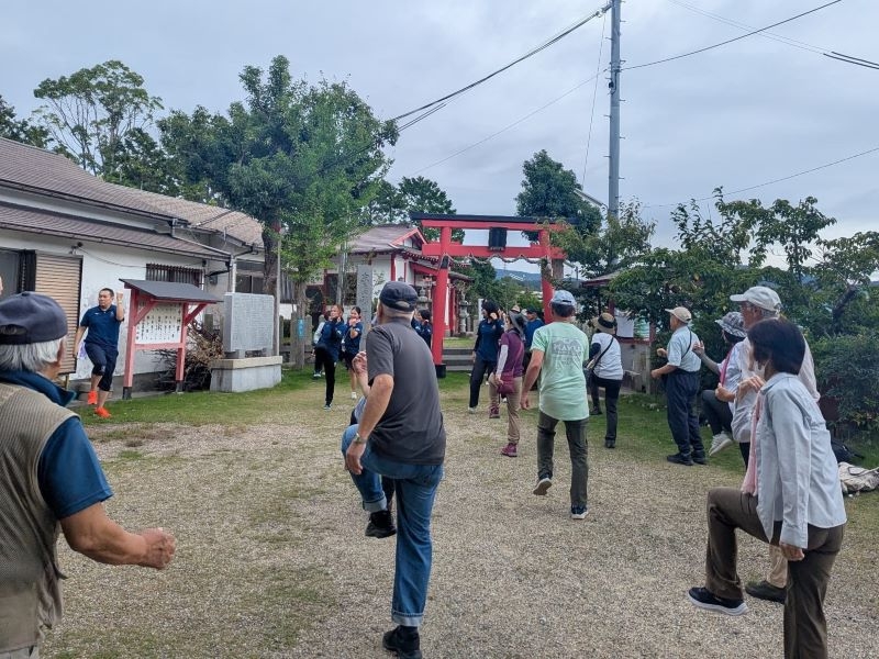 鈴蘭台末広稲荷神社で心身ともにリフレッシュコースは順に、鈴蘭台駅(集合・スタート)~鈴蘭台末広稲荷神社(きたきた!元気体操実施)~西鈴蘭台駅(ゴール)までの約5km(約1時間15分)となりましたが、それぞれが夏の終わりを感じつつ目的地に向かってキビキビと歩く姿が印象的でした。本学学生も無事に全員が完歩することができました。