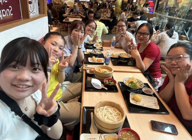 モールでは師範大学の学生とうどんを食べました。初めて食べた学生もいました。